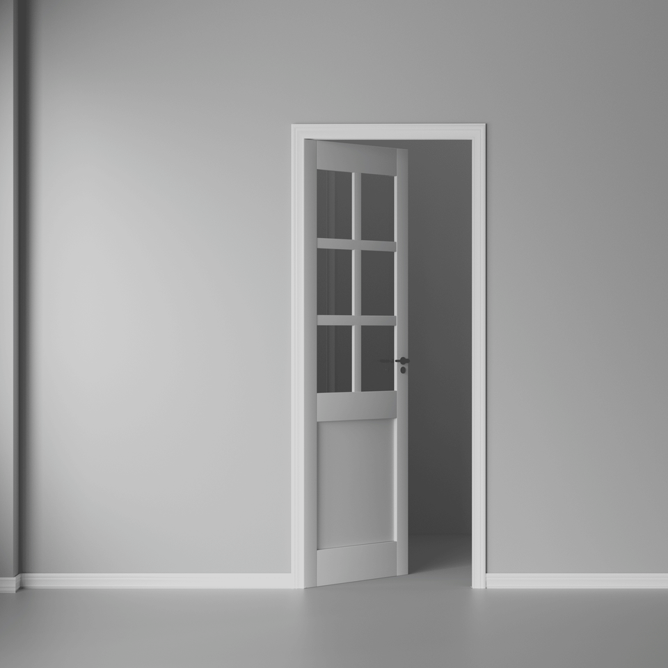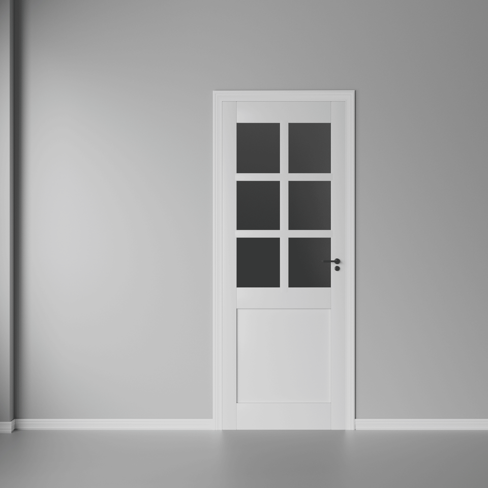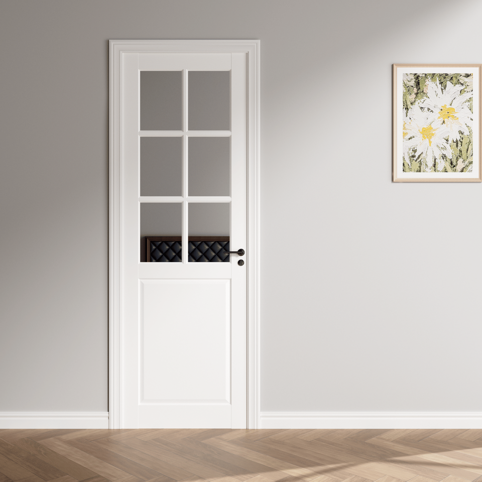 Porte de grange en bois massif à 1 panneau pré-assemblée, verre 6 Lite, style intérieur français