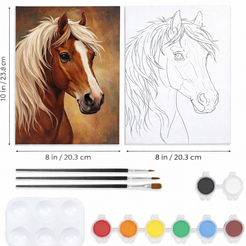 Kit de peinture sur toile pré-dessinée Cheval, Ensemble DIY pour soirées peinture, Pinceaux à peinture acrylique, Kit d'art facile pour enfants et adultes, Décoration intérieure