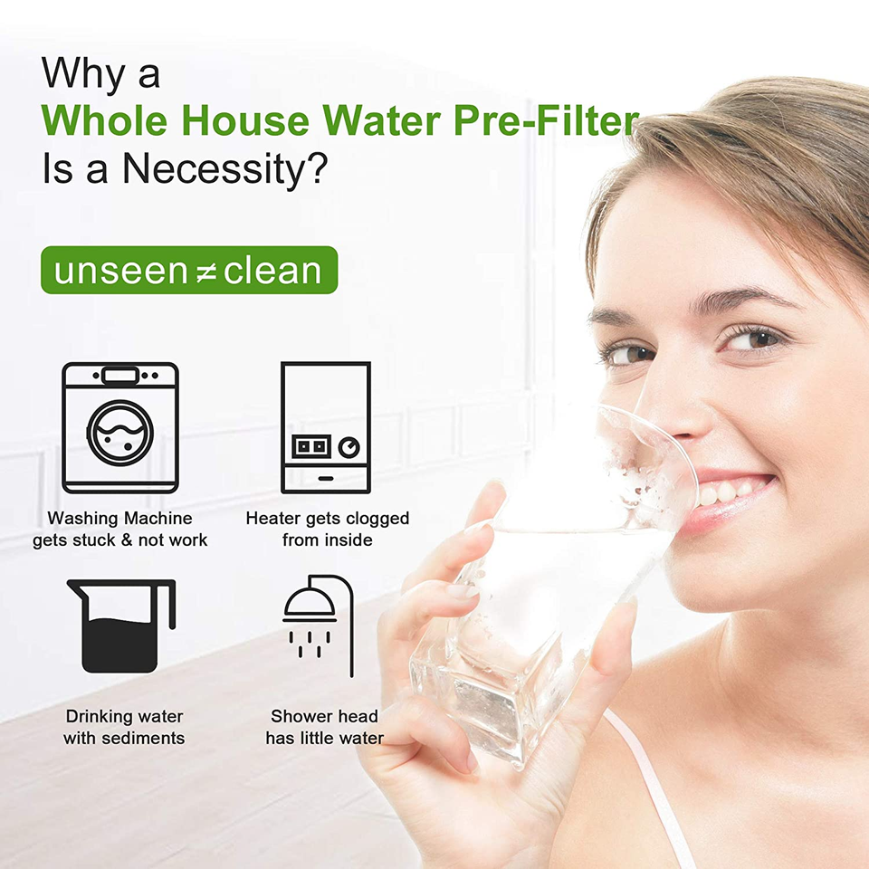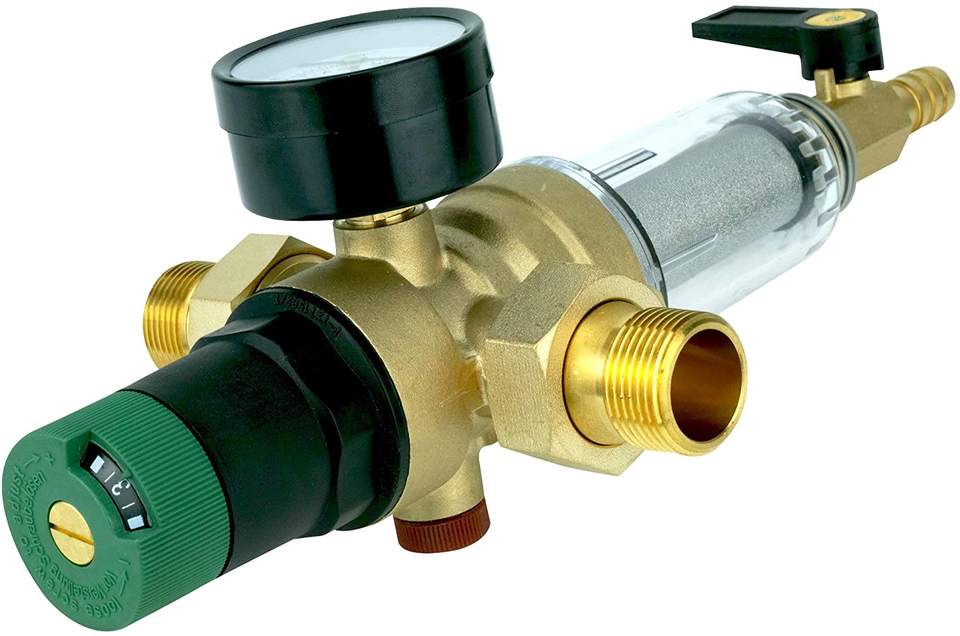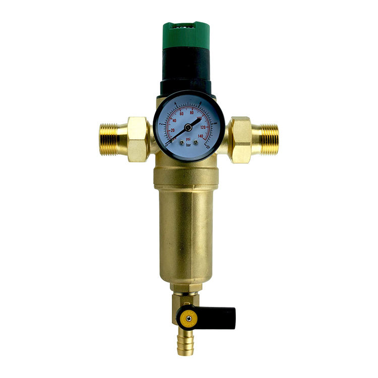 Pre Filter with Pressure Regulator & Gauge/Tap Water Connector 1" & Adapter to 3/4" 1/2" Home Connection Sediment Water Filter