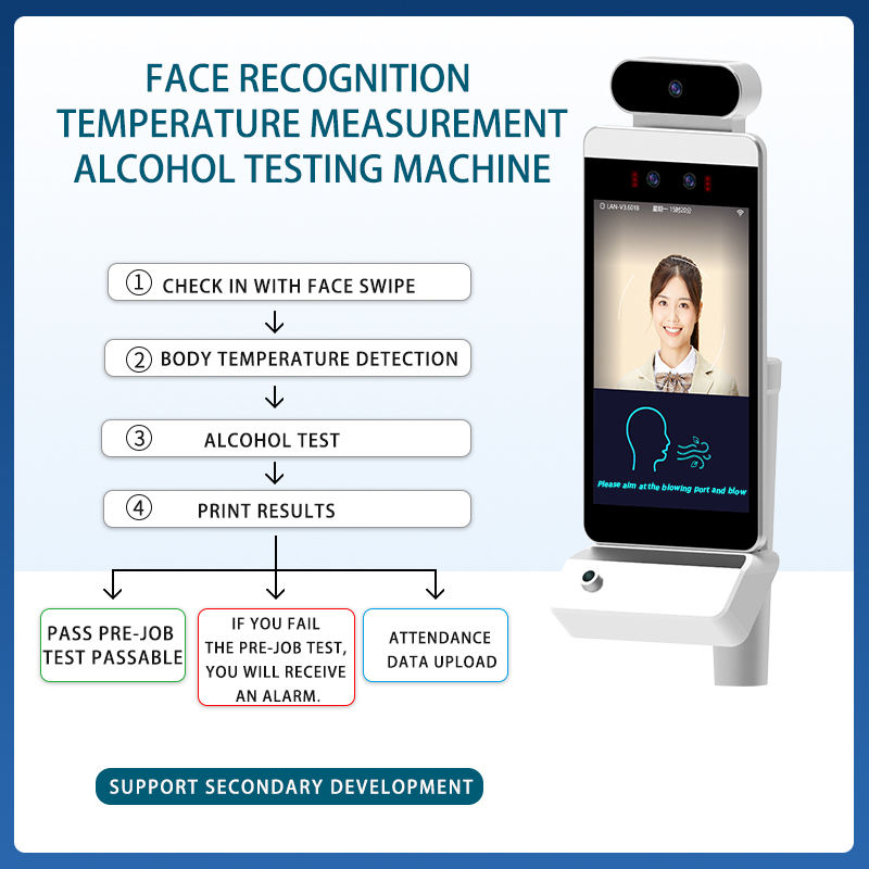 Alcootest pré-emploi système de présence reconnaissance faciale réinitialiser personnalisé IP SDK borne de détection d'alcool pour chauffeur camion exploitation minière
