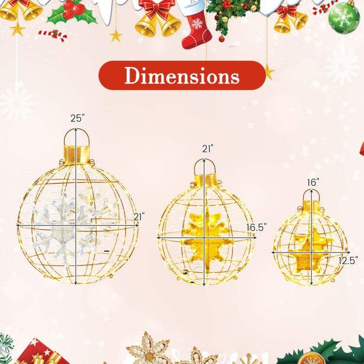 Ensemble de 3 lanternes décoratives pré-éclairées avec 732 lumières LED brillantes et piquets de sol