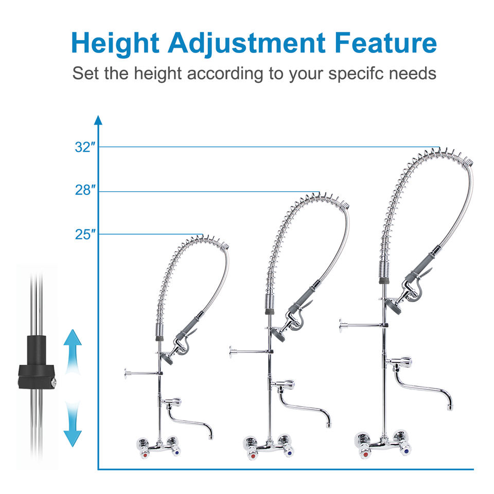 Robinet de cuisine industriel en laiton robuste à double poignée avec douchette extractible pour lavage pré-évier