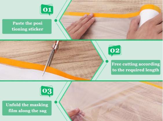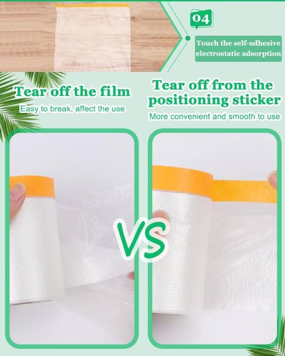 Film de masquage pré-adhésif, film plastique adhésif pour la peinture, protection automobile et des meubles