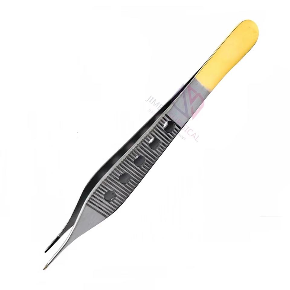 Pinces à tissus Adson de précision en acier inoxydable 4,75 po, pointes dentelées délicates, manuelles, certifiées CE pour la chirurgie plastique, haute qualité