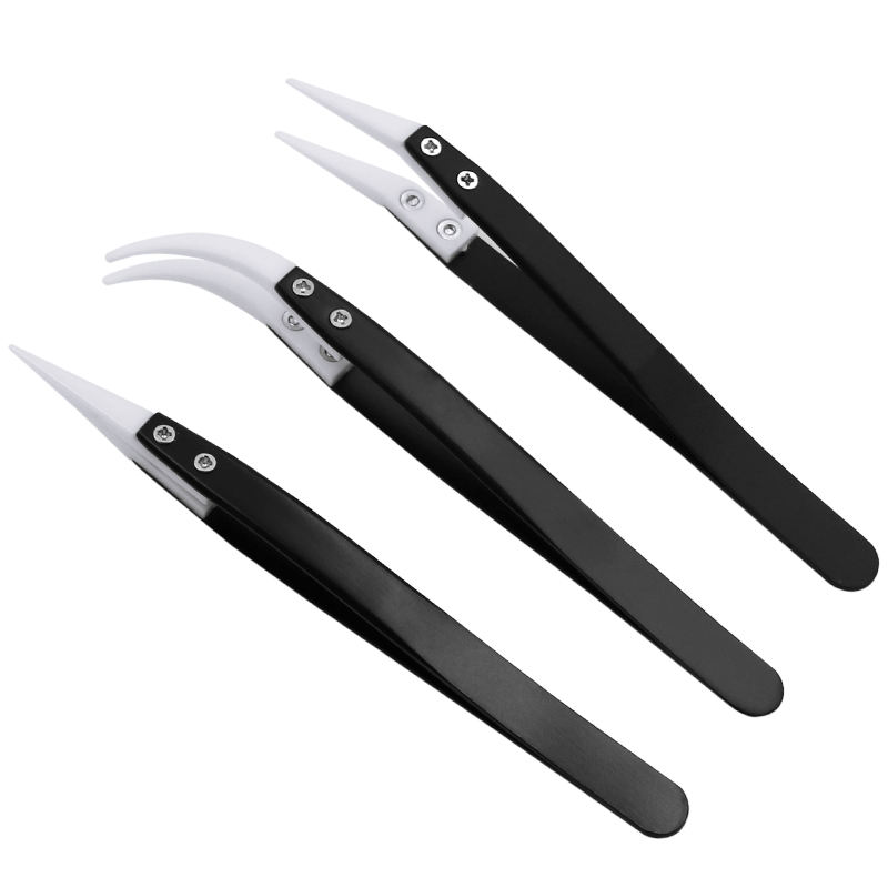 Precision Anti-Static Stainless Steel Handle High Temperature Resistant Ceramic Tweezers for DIY Electronic Industrial Use