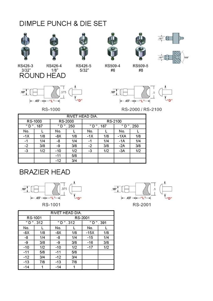 4,76mm (3/16 ") Alun 3,96mm (5/32") Acier