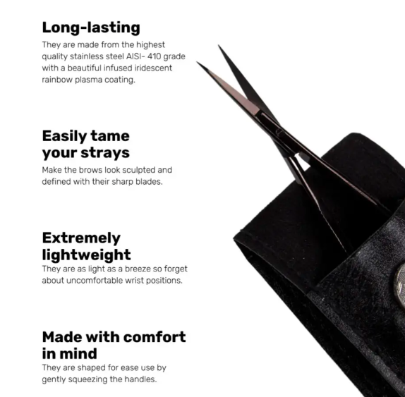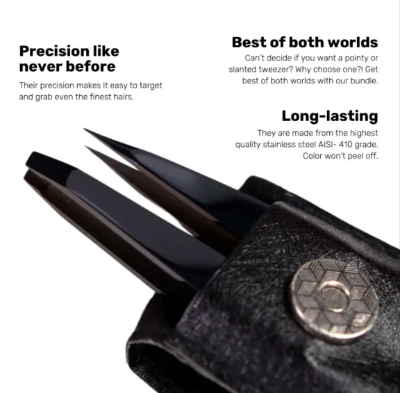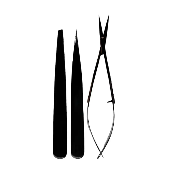 Pince à épiler à sourcils professionnelle en acier inoxydable de couleur noire de précision avec ensemble de ciseaux pour les sourcils des femmes et des hommes respectueux de l'environnement