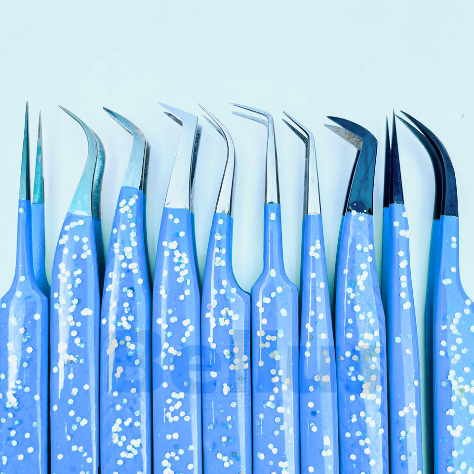 Pince à épiler de Volume d'étiquette en acier inoxydable de couleur personnalisée enduite de précision Outil de cils de Style russe d'étiquette personnalisée pour les extensions de cils