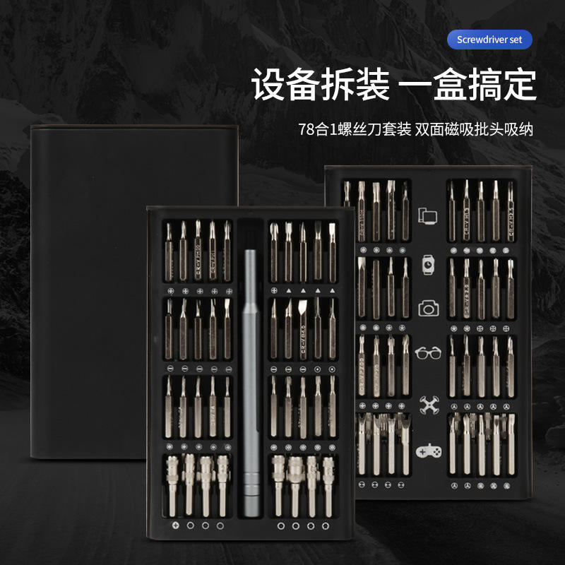 Jeu de tournevis magnétiques de précision 78 en 1 pour la réparation de téléphones et le démontage d'électroniques avec embouts nickelés
