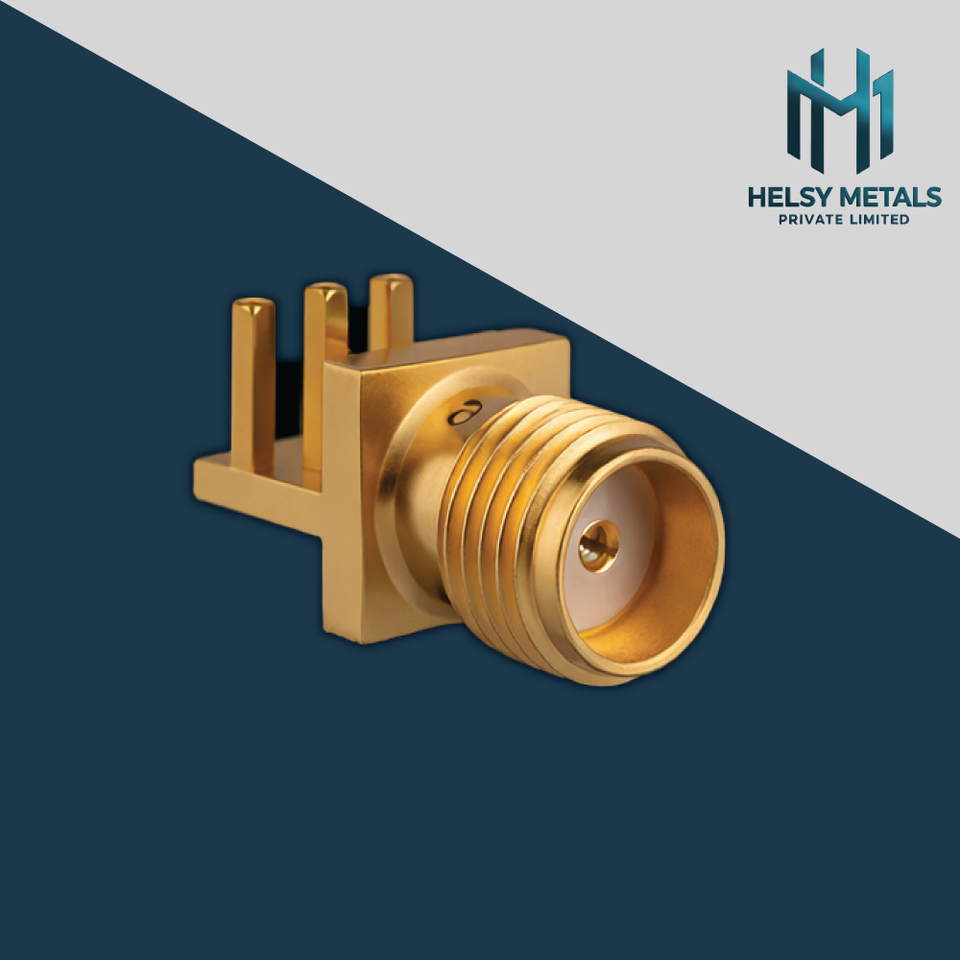 Connecteur RF à angle droit SMA femelle de précision, montage sur circuit imprimé, laiton plaqué or pour systèmes électriques haute fréquence