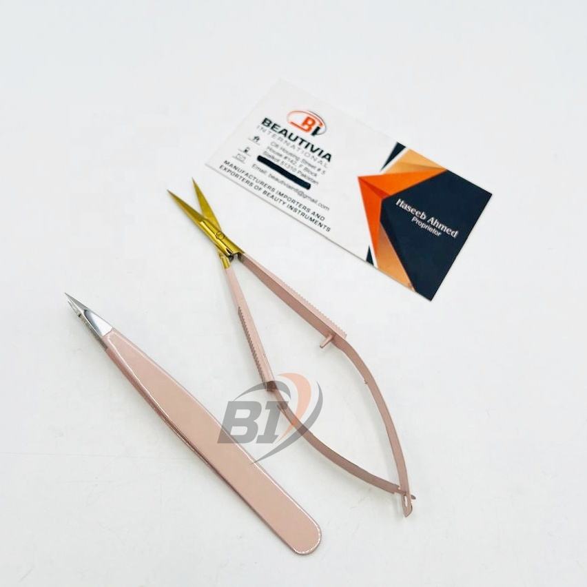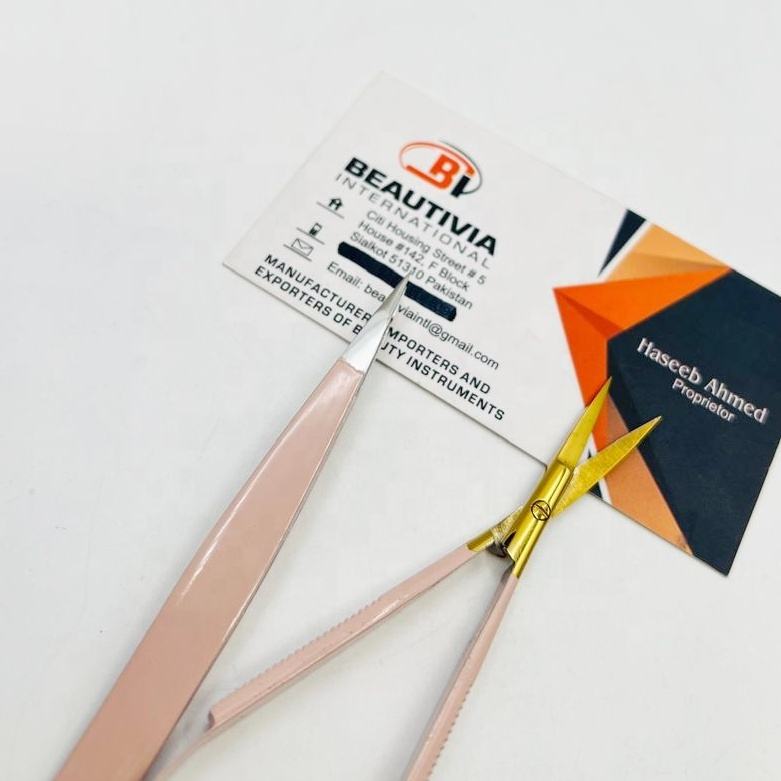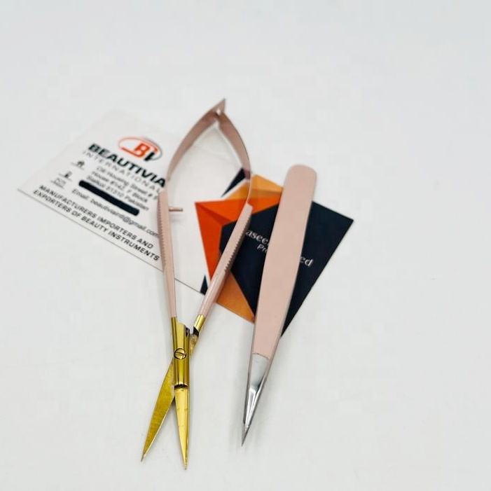 Pince à épiler et ciseaux professionnels légers et écologiques en acier inoxydable de précision à pointe fine pour le soin des sourcils, avec logo personnalisé