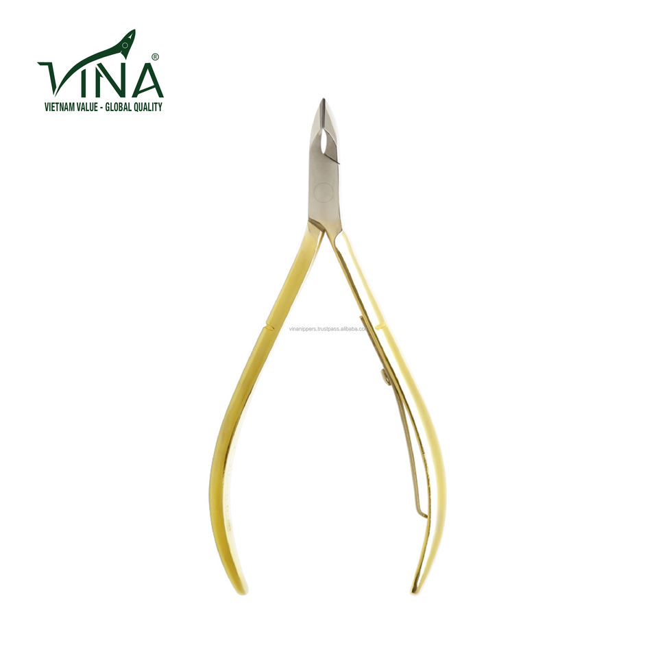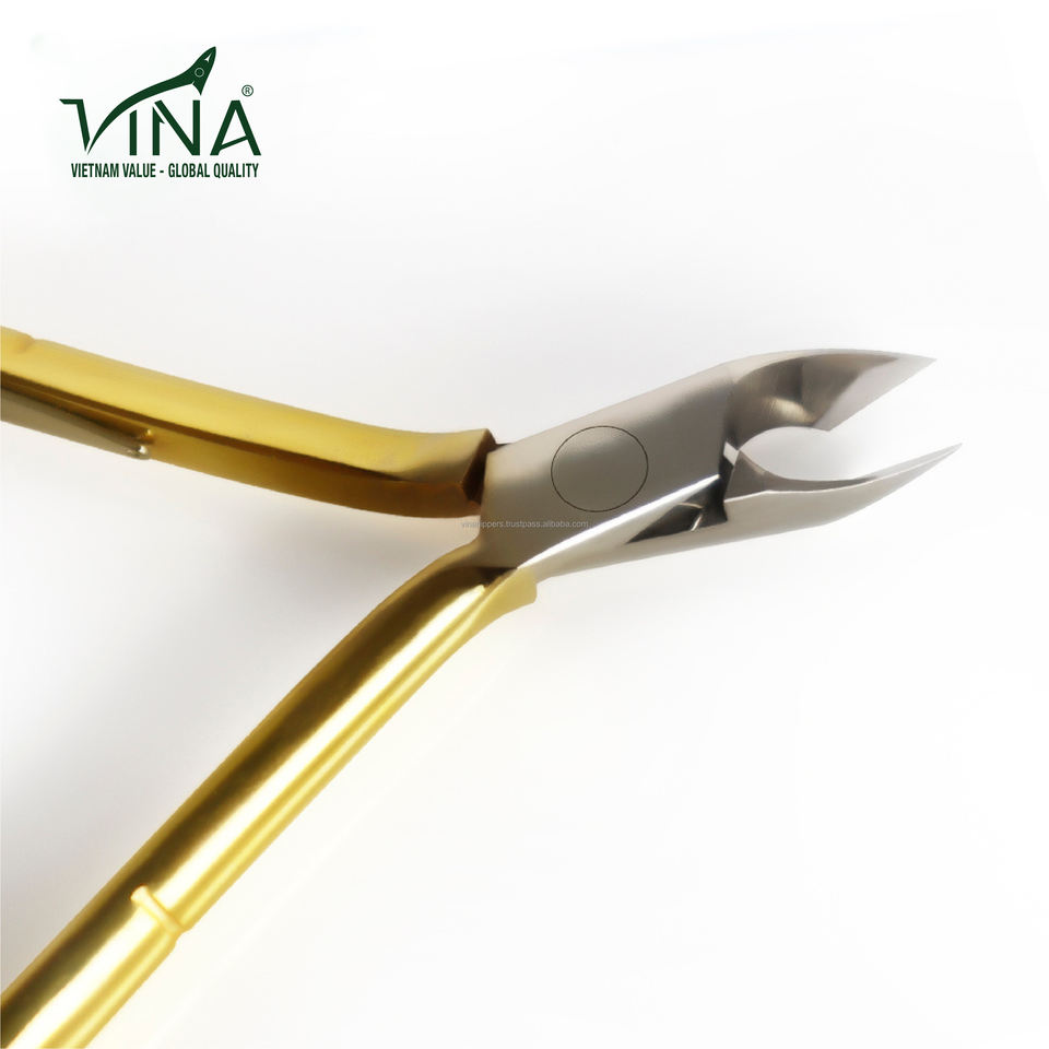 Pince à pointe de précision VNC-20-GC outil à cuticules à lame dorée poignée en acier au carbone OEM pour la perfection de la ligne des ongles