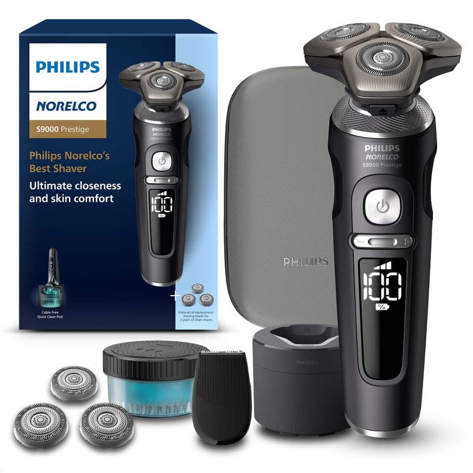 Tondeuse de précision et rasoir électrique triple lame pour usage humide/sec avec pochette de nettoyage, étanche IPX7, finition noire mate
