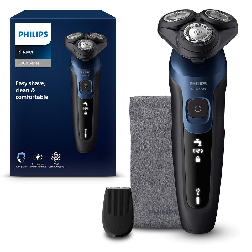 Rasoir Électrique Sans Fil de Précision pour Homme, Utilisation Humide et Sèche, Bleu Métallisé, Tondeuse Professionnelle IPX7, Batterie, Pochette Souple, Étui de Voyage