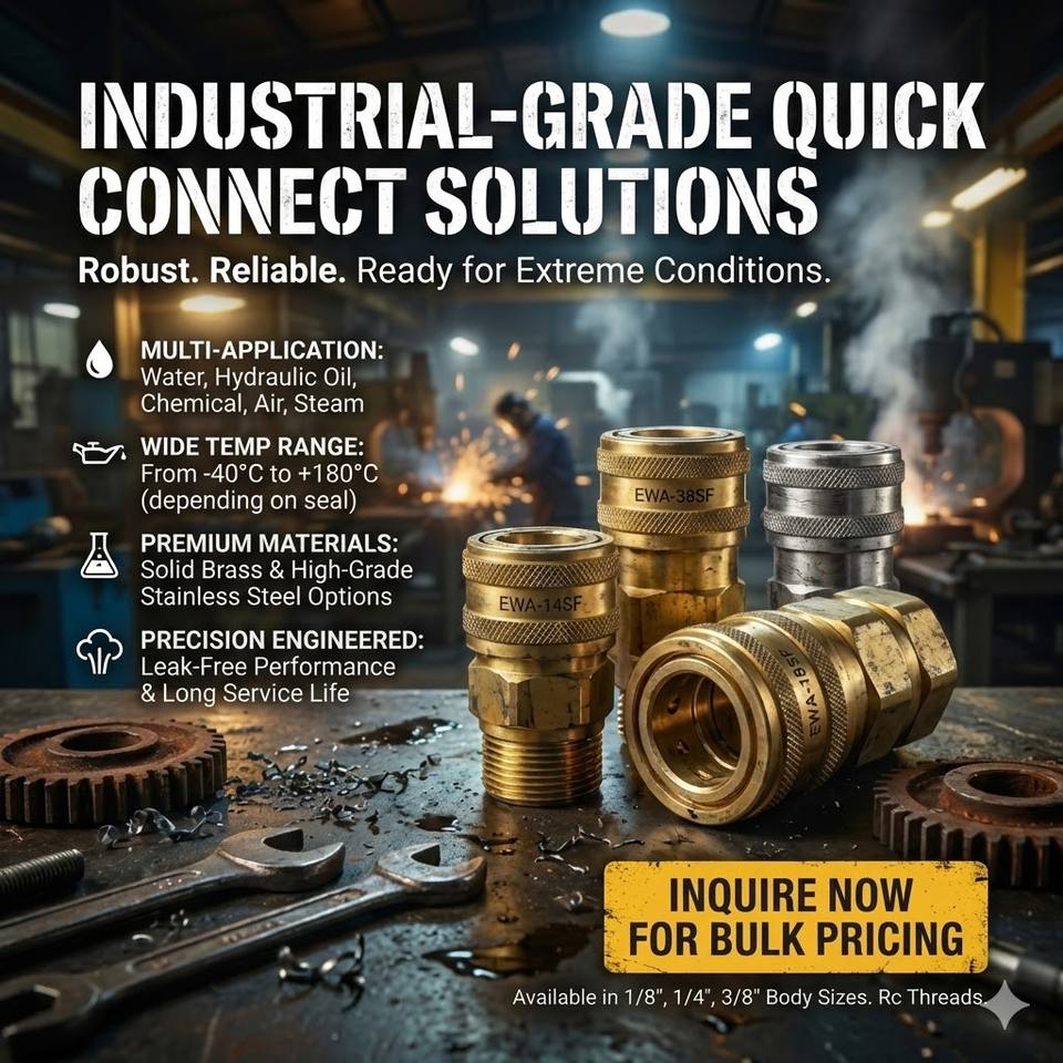 Raccord pneumatique rapide en laiton jaune de précision, corps 1/8 po, filetage femelle RC 1/8. EWA-18SF