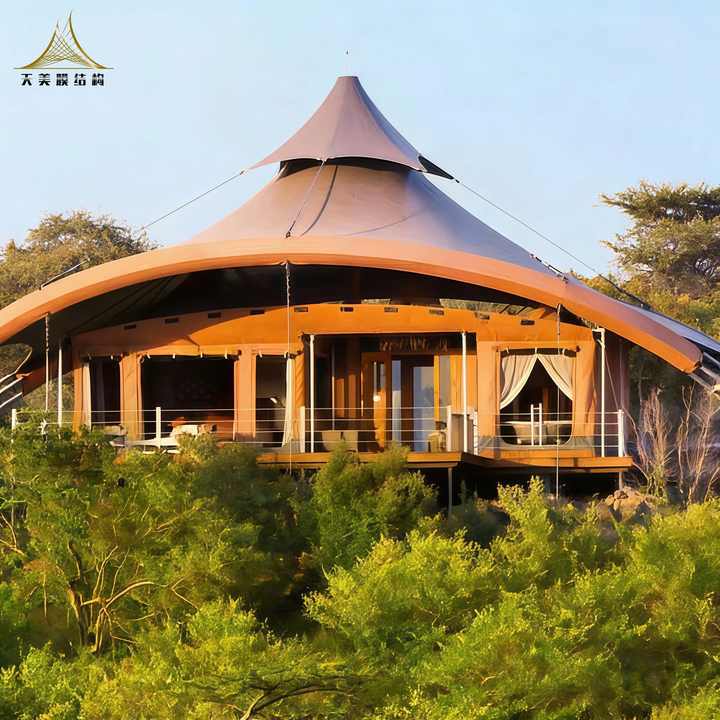 Préfabriqué 2-4 personnes maisons PVDF + toile matériel safari lodge glamp hôtel tente à vendre en afrique du sud