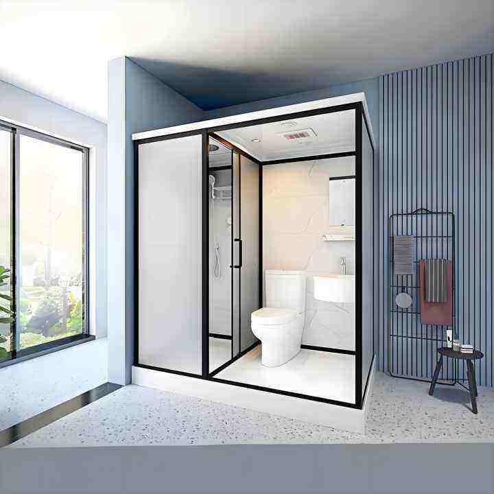 Module de salle de bain préfabriqué moderne et écologique avec receveur en céramique, ensemble douche, lavabo et toilettes tout-en-un personnalisé