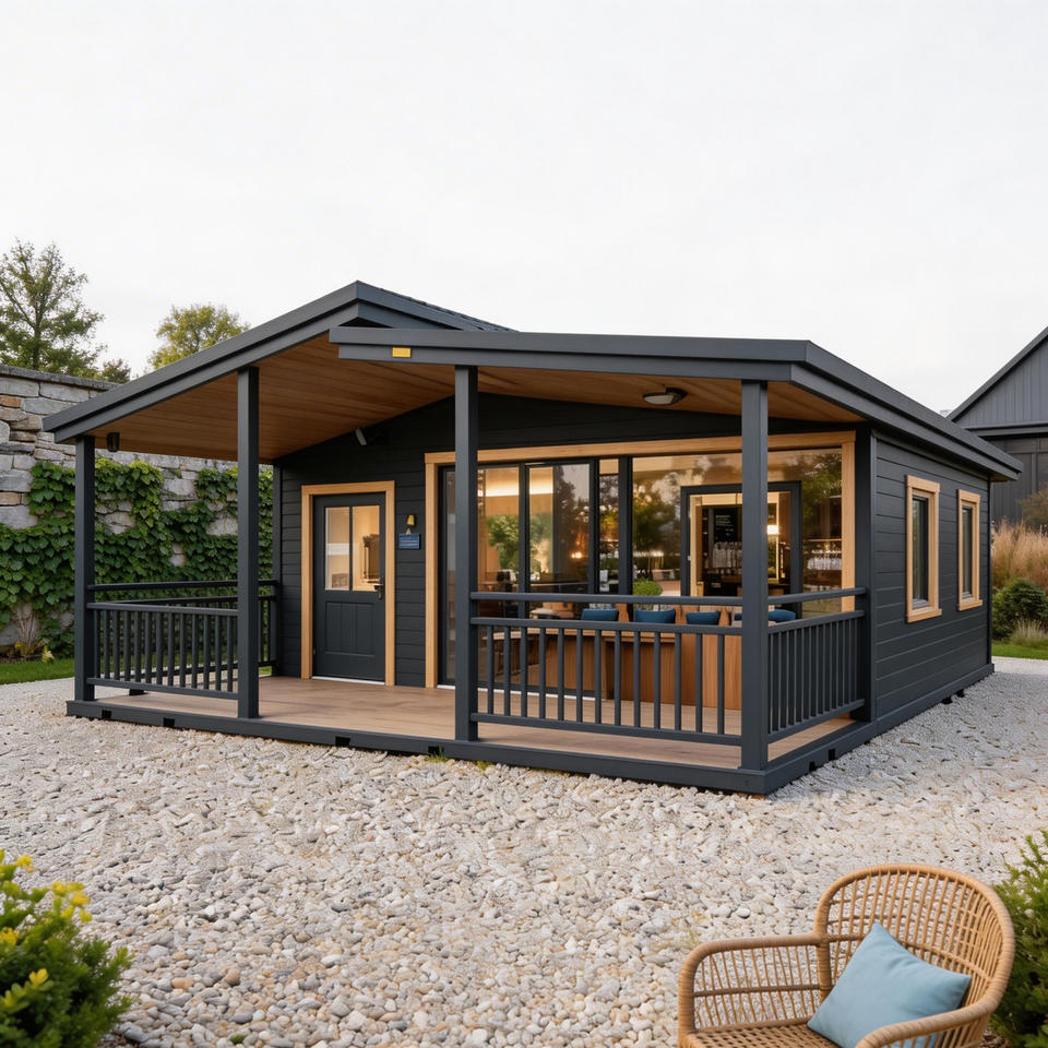 Maison modulaire préfabriquée économique en conteneur de 20 pieds, 2 chambres, avec énergie solaire