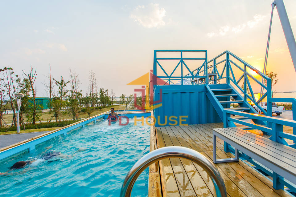 Piscine modulaire préfabriquée moderne en conteneur maritime avec système de surf et système d'éclairage