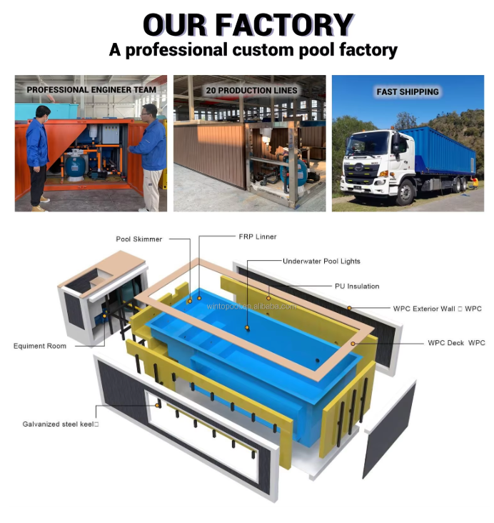 Piscine préfabriquée modulaire portable pour l'extérieur et l'intérieur, usage commercial et résidentiel, hors sol, en conteneur