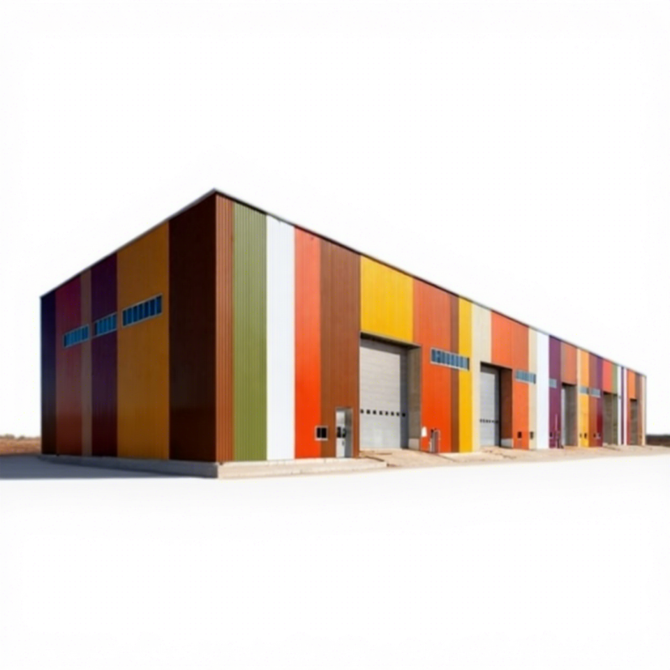 Bâtiment de stockage préfabriqué en acier robuste, panneaux d'isolation, soudage, pliage, découpe, structure à treillis à grande portée, couleur personnalisée