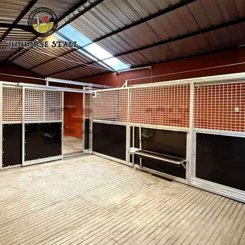 Écurie préfabriquée galvanisée, équipement équestre complet, comprenant un devant de box durable pour chevaux