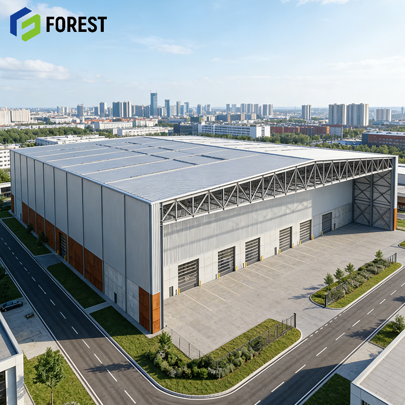 Entrepôt de stockage industriel préfabriqué pour centre de livraison express, entrepôt logistique en structure métallique préfabriquée