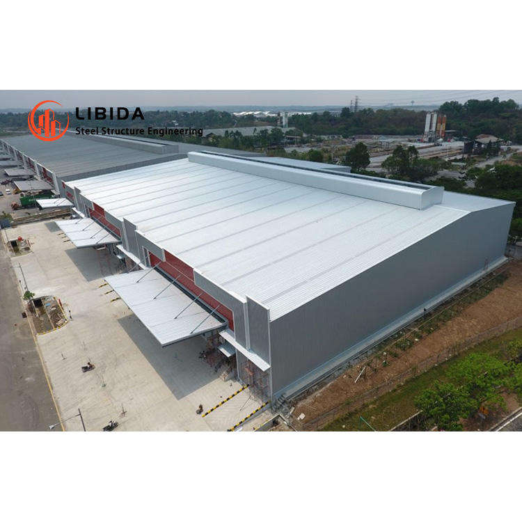 Structure en acier préfabriquée à ossature portique pour entrepôt industriel moderne, atelier, hall, bâtiment d'usine sur mesure à section H, haute capacité de charge