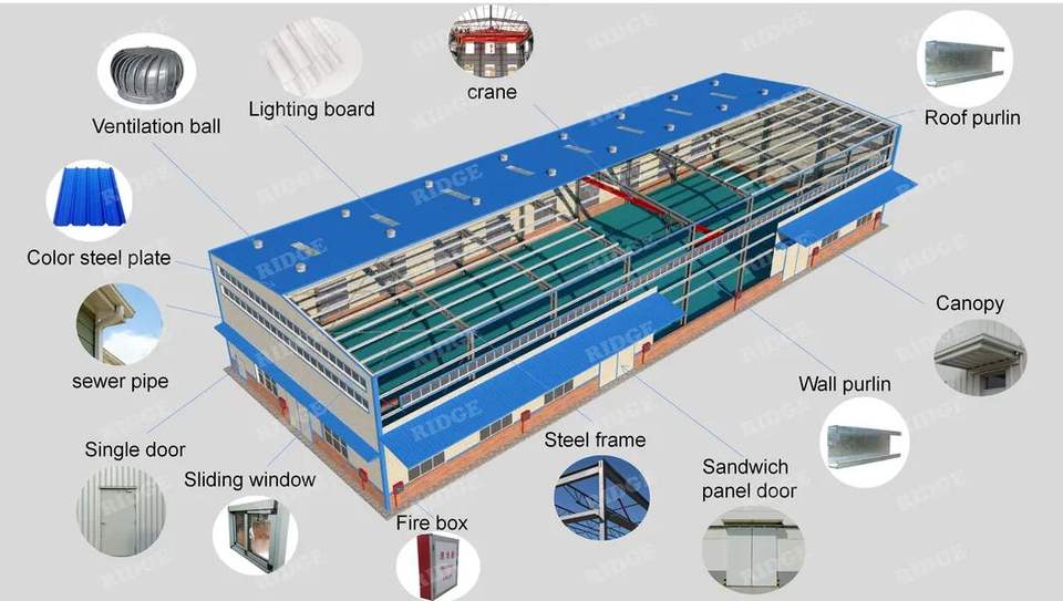 Bâtiments préfabriqués en acier, ateliers, usines, entrepôts, bâtiments modulaires à ossature métallique
