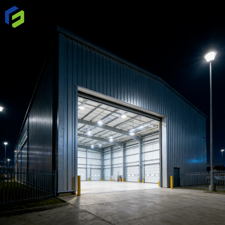Atelier préfabriqué en acier - Conception à ossature longue portée, taille personnalisable, facile à monter soi-même, instructions complètes, pièces incluses