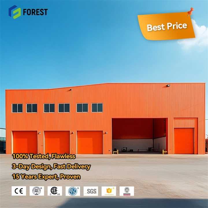 Bâtiment d'atelier préfabriqué en structure métallique à longue portée, certifié CE/ISO9001 pour bâtiments industriels et bureaux