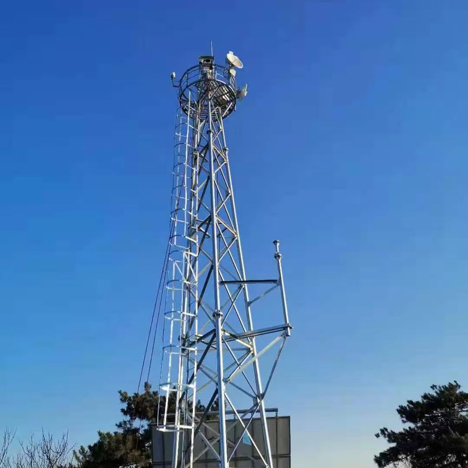 Tour d'observation préfabriquée en tube d'acier avec antenne paratonnerre à plate-forme en acier pour négliger les télécommunications