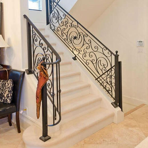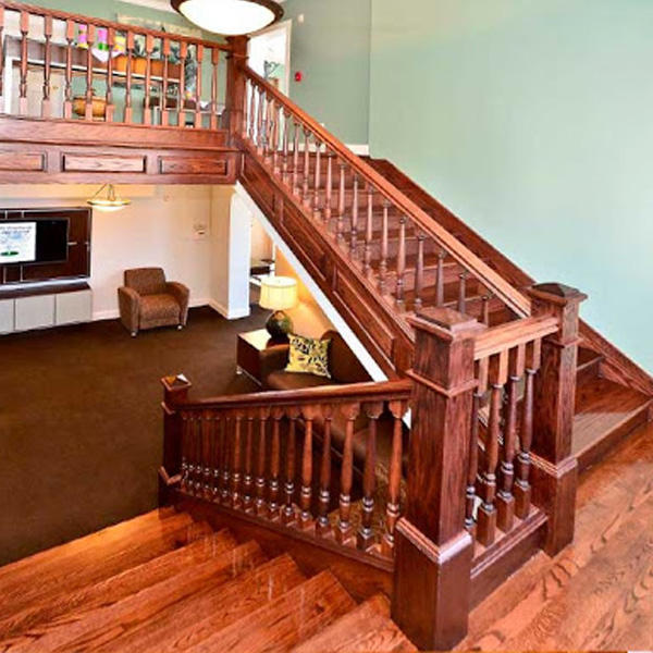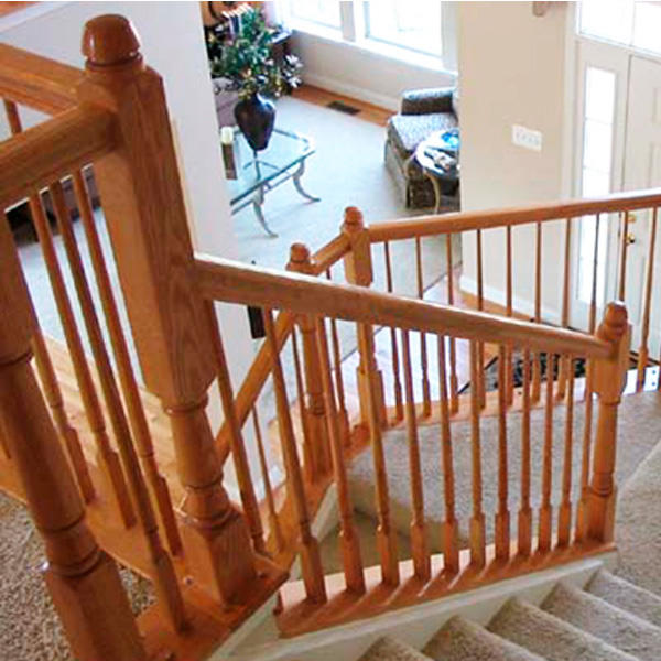 Escalier intérieur en bois de chêne préfini, couleur blanche, design de poteaux