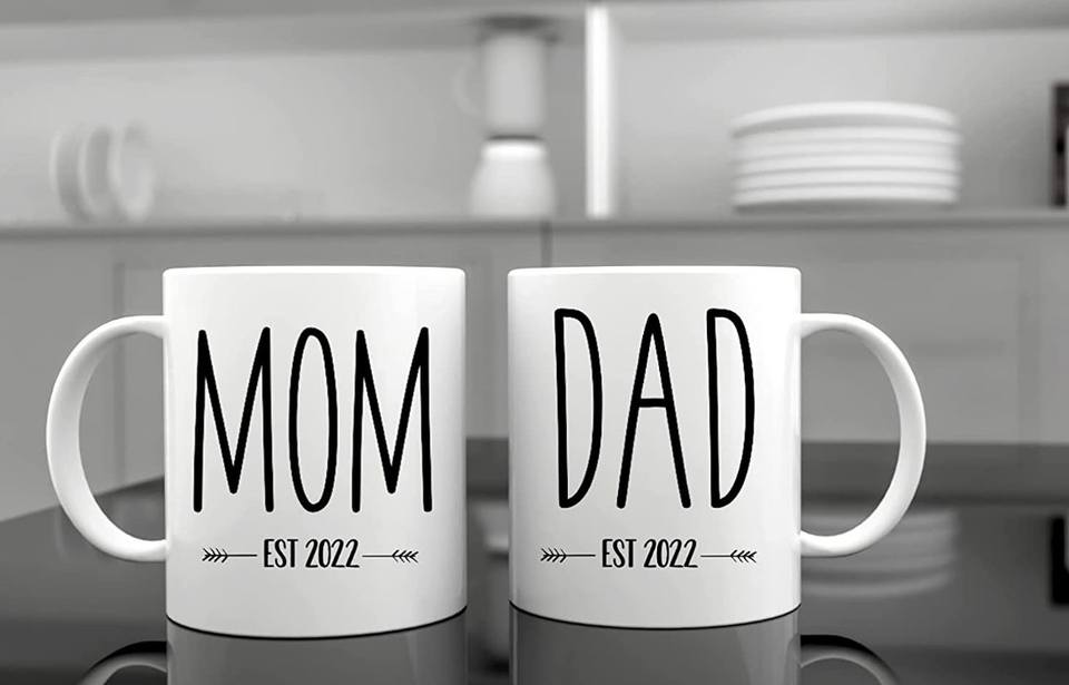 La grossesse Cadeau EST-2022 Nouvelle Maman et Papa 325ml Tasse Ensemble avec Salopette Le premier choix cadeau ensemble pour les nouveaux et les futurs parents