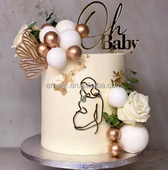Pregnant Woman Cake Topper:Pregnant lady Acrylic Happy Birthday Cake Topper
