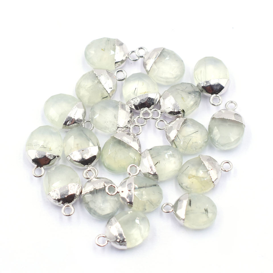 Pendentif en prehnite de 12 à 14 mm avec anse, forme ovale, plaqué argent, pour la création de bijoux