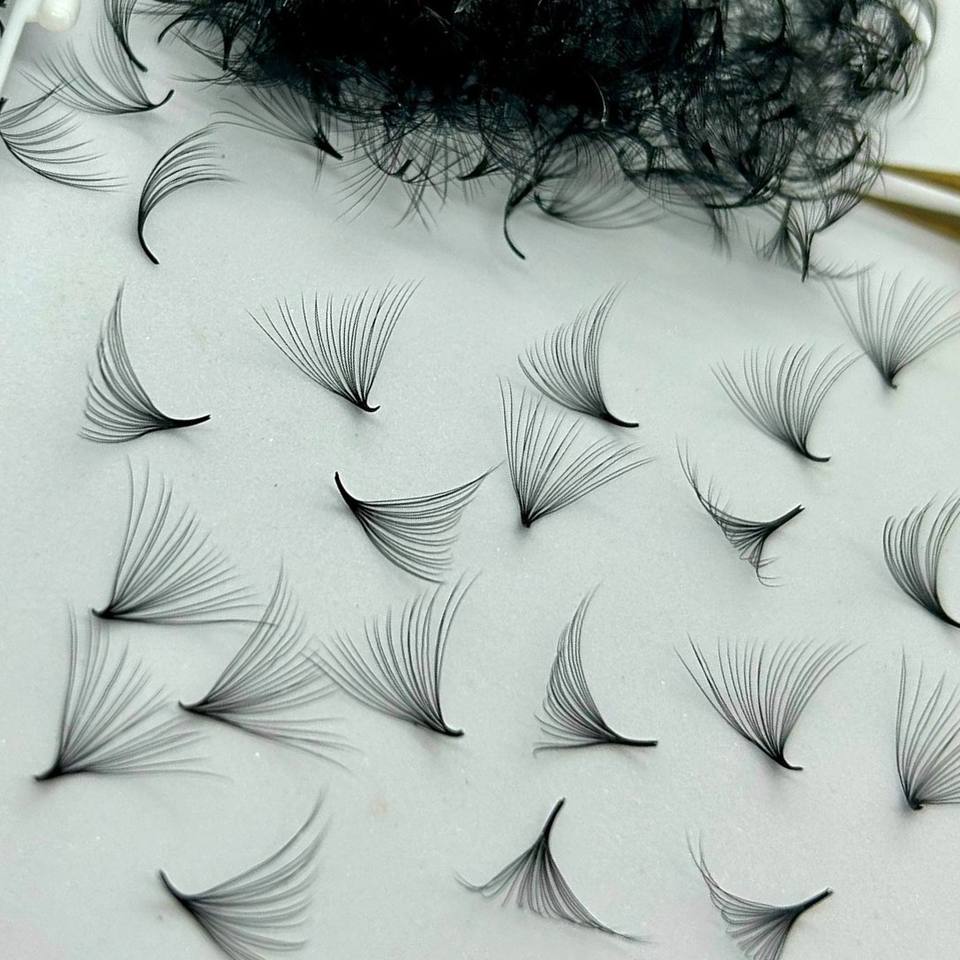 Faux cils volume préfabriqués, base fine et pointue, couleur foncée