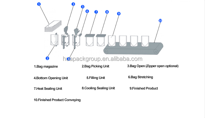Premade Stand Pouch Automatique Doypack Machine Bec Poche À Fermeture Éclair pour Sauce Remplissage Alimentaire Scellage Feuille De Plastique Industrie Du Vêtement