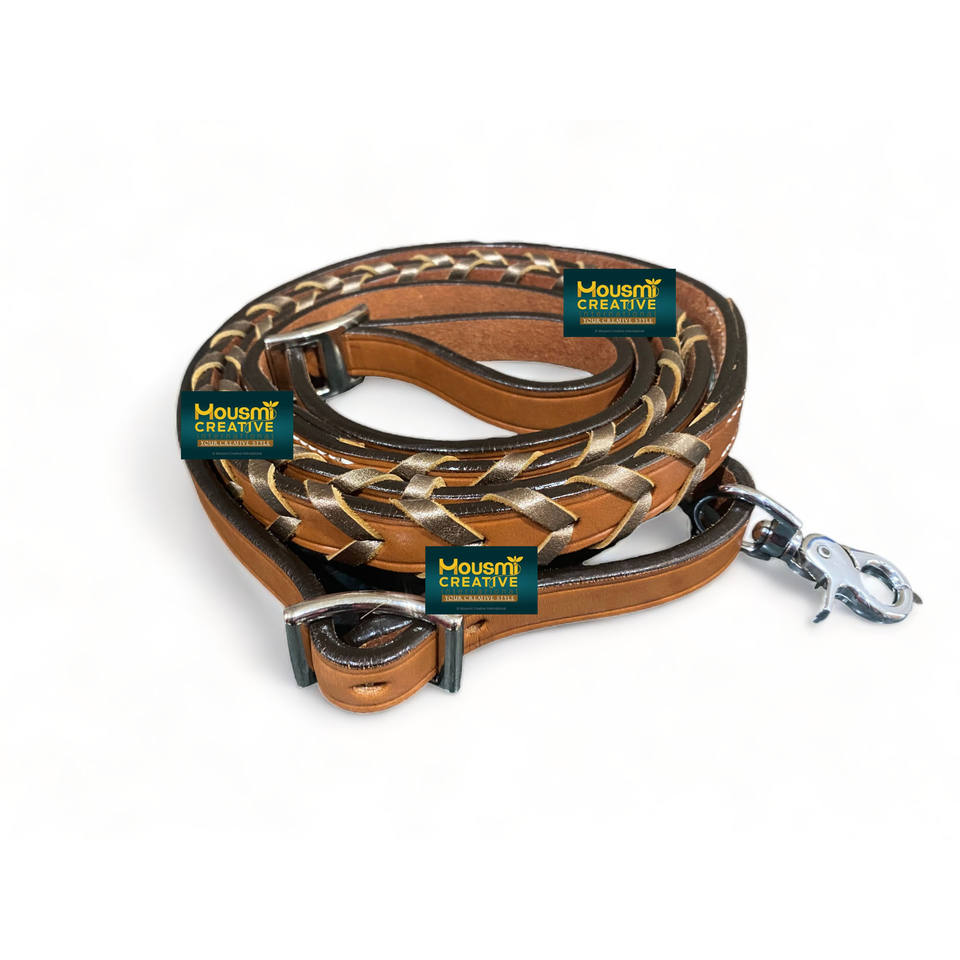 Western Equestrian Horse Leather Rein With Braided Leather Lace FoilProduct Name
