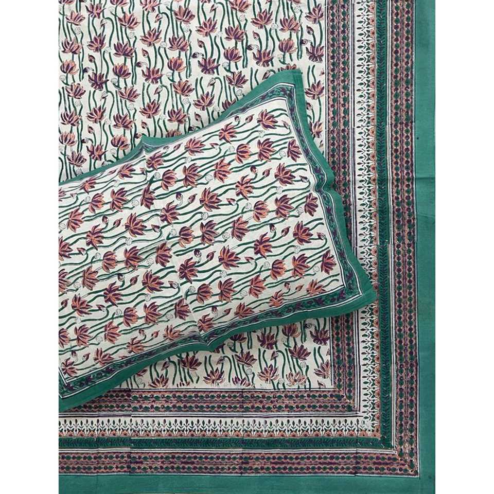 Parure de lit double en coton 100% premium, imprimée à la main, motif floral, avec taie d'oreiller en microfibre, pour la maison et l'hôpital