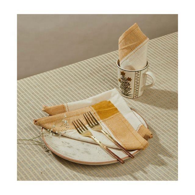 Nappe de table en coton et lin 100% premium avec serviettes de table, vaisselle d'hôtel durable, vente en gros OEM ODM