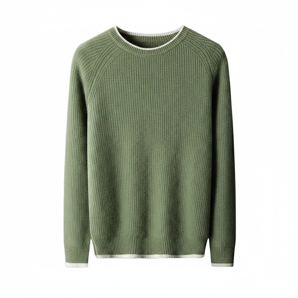 Pull en laine pure à 100 % pour homme, tricoté, chaud, respirant, col rond, manches classiques, motif durable