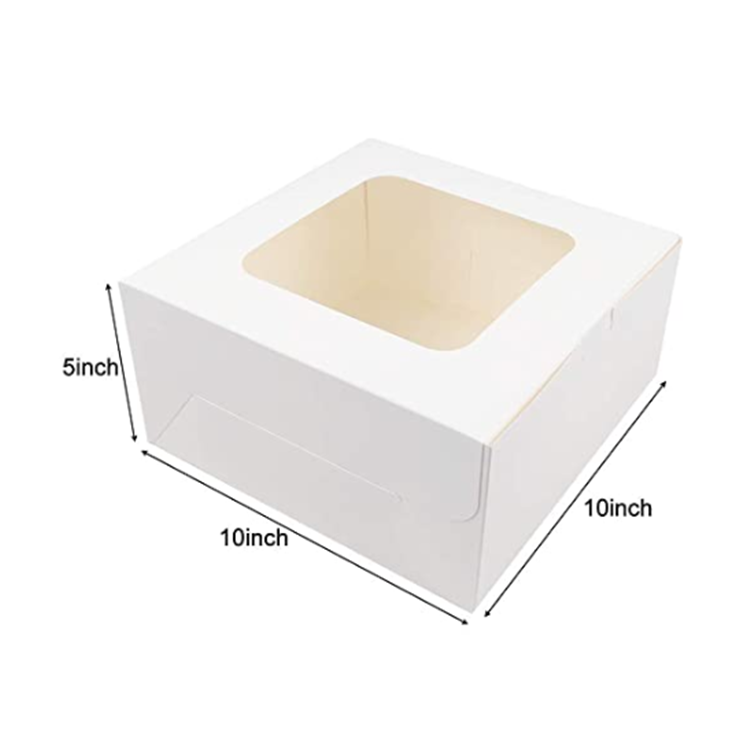 Boîte à gâteau de luxe en forme de cube, 10x10x5 pouces, en papier alimentaire recyclable, personnalisable, avec fenêtre et finition mate gaufrée