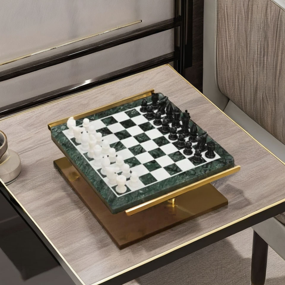 Jeu d'échecs en marbre vert carré de 12 pouces de qualité supérieure plateau de jeu de luxe avec des pièces de 2 pouces pour le matériel de pierre de décor de bureau à domicile