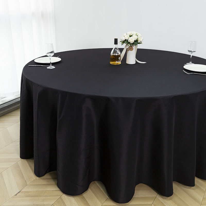 Housse de table ronde en spandex tissé anti-taches noir de qualité supérieure, 120 pouces, polyester lavable, taille et couleur personnalisables pour un usage hôtelier