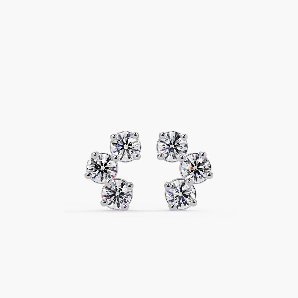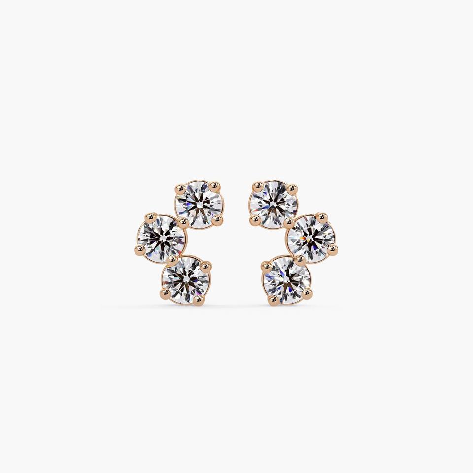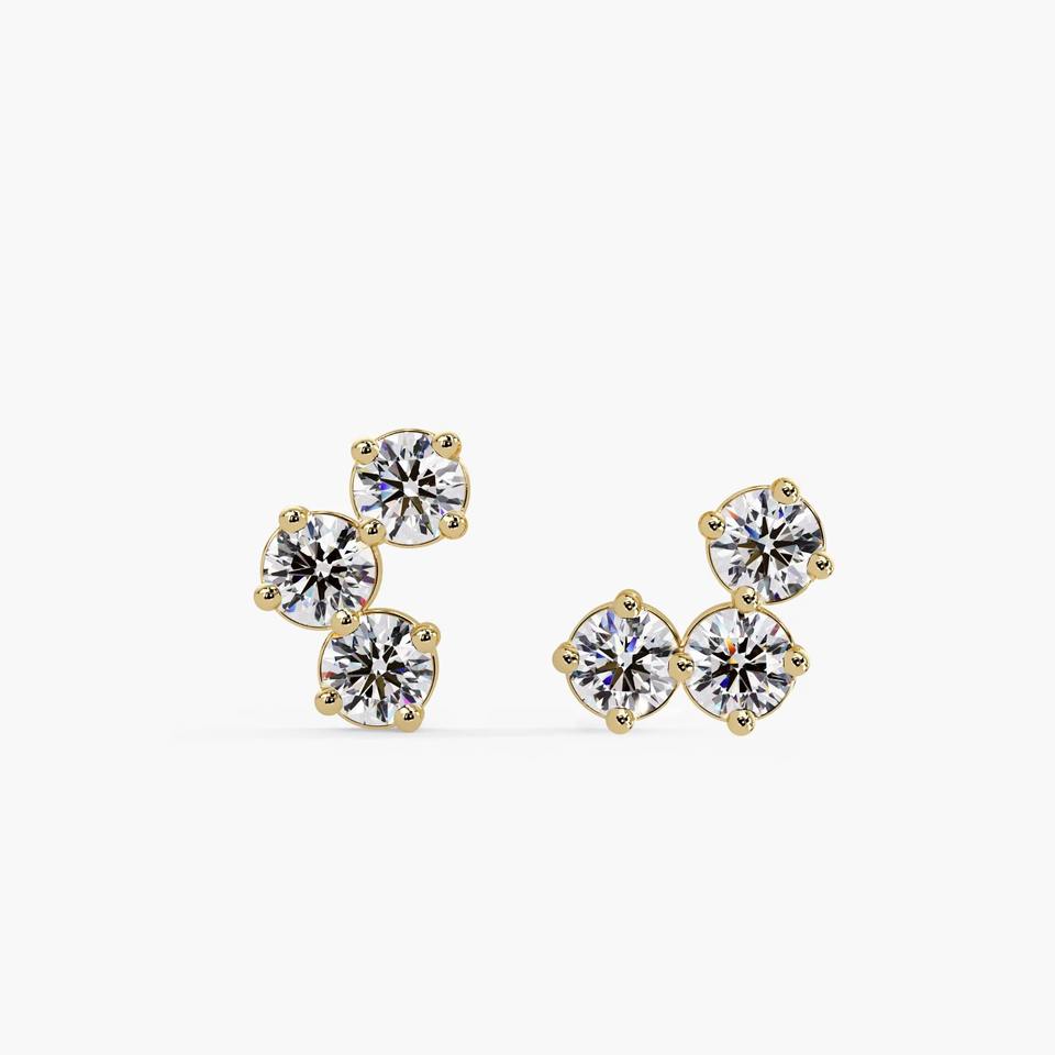 Boucles d'oreilles clous en or massif 14 carats de qualité supérieure avec 6 diamants de laboratoire 0,38 carat, sertis à griffes, certifiées IGI, pour mariage, anniversaire, fête