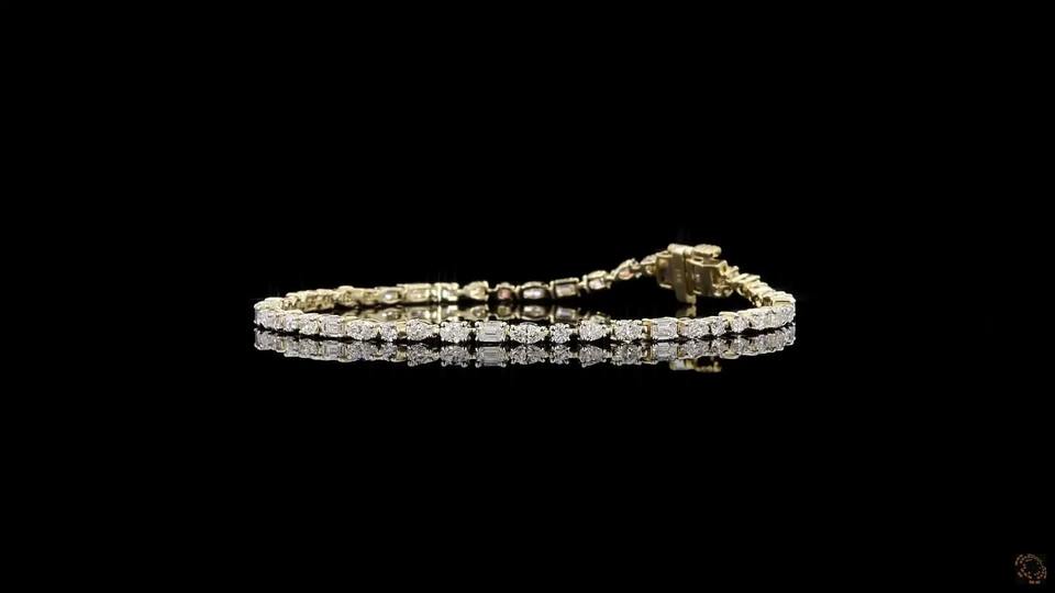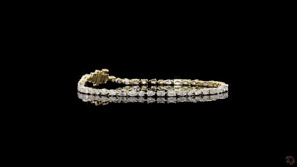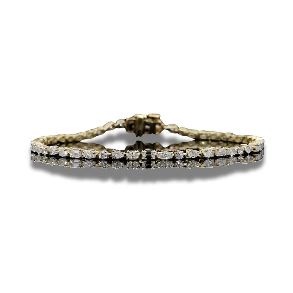 Bracelet en diamant de laboratoire de forme mixte de qualité supérieure 2.95 ct or jaune 14 carats EF VVS 7 pouces bijoux fins minimalistes
