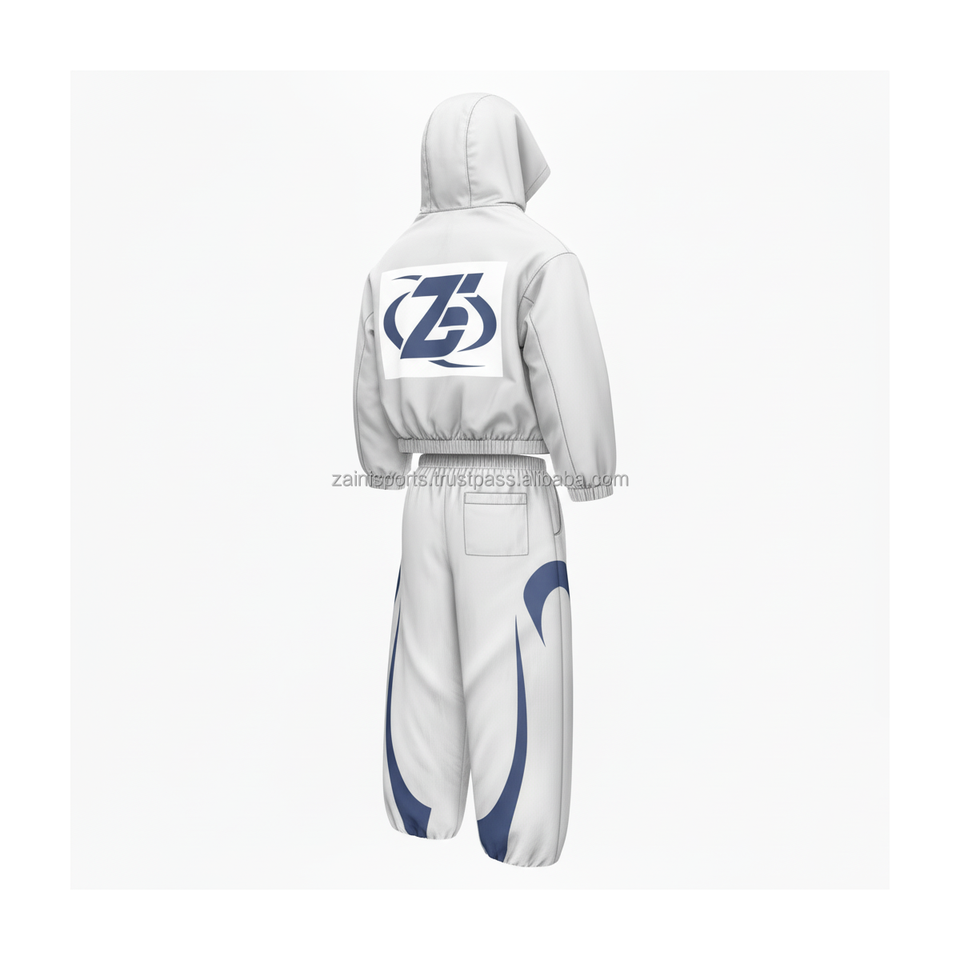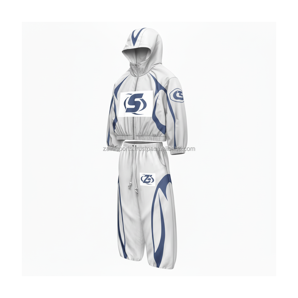 Ensemble coupe-vent en polyester 210 GSM de qualité supérieure tissu léger et respirant conception de panneau blanc et bleu impression de logo personnalisé grande taille