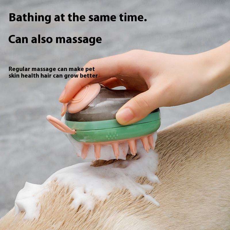 Soft Silicone Brush Head:Round smooth bristles, gentle on pet skin
