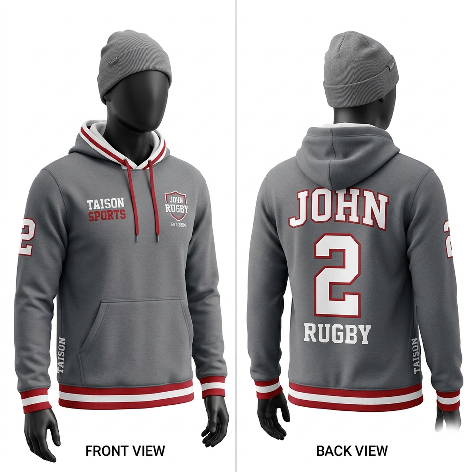 Sweat à capuche de rugby en molleton de coton premium 320 GSM, rouge, avec logo brodé personnalisé, doux, chaud, coupe athlétique